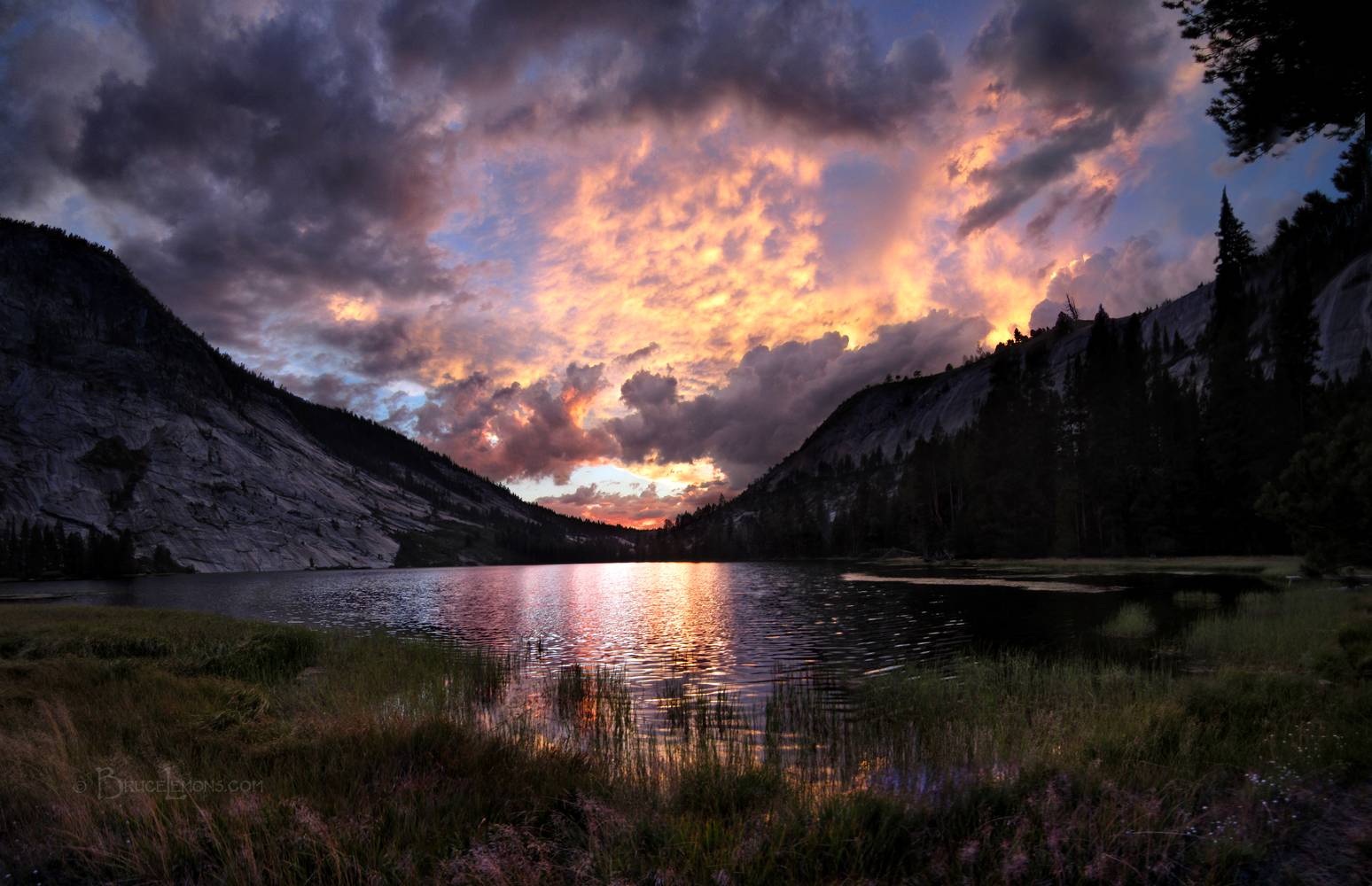 Purple Sunset Over Merced Lake - Yosemite Purple sunset over Merced Lake from the E shore. California, Sierra Nevada Mountains, Yosemite. Off the John Muir Trail near Mile 005.