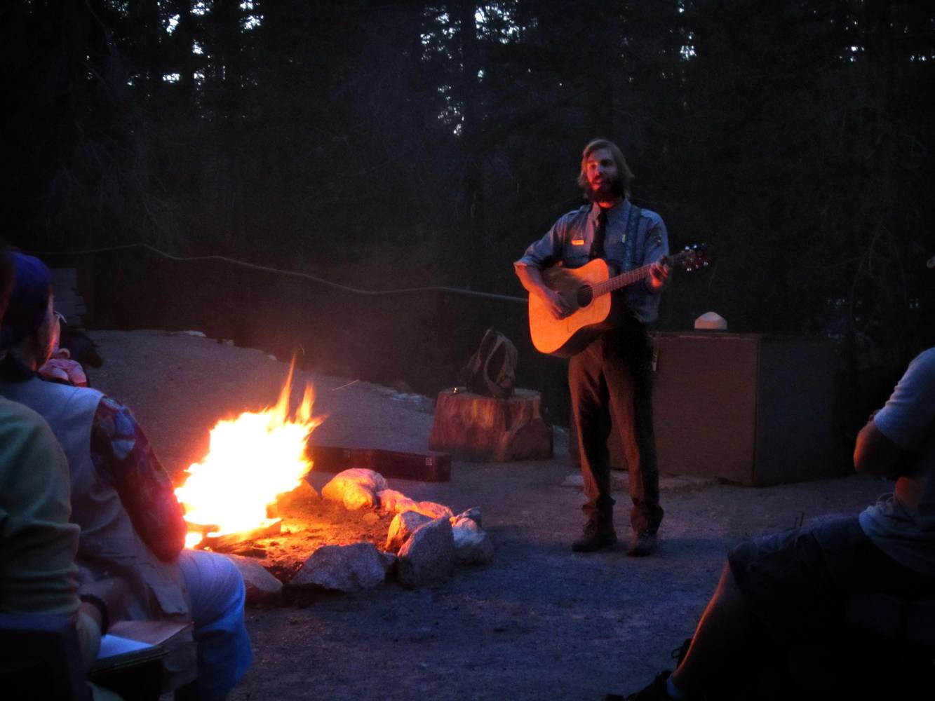 Tuolumne Meadows Fireside Chat - Yosemite Fireside chat by a TM ranger at the campground fire circle inTuolumne Meadows. California, Sierra Nevada Mountains, Yosemite, Tuolumne Meadows, fire circle. John Muir Trail Mile 023.