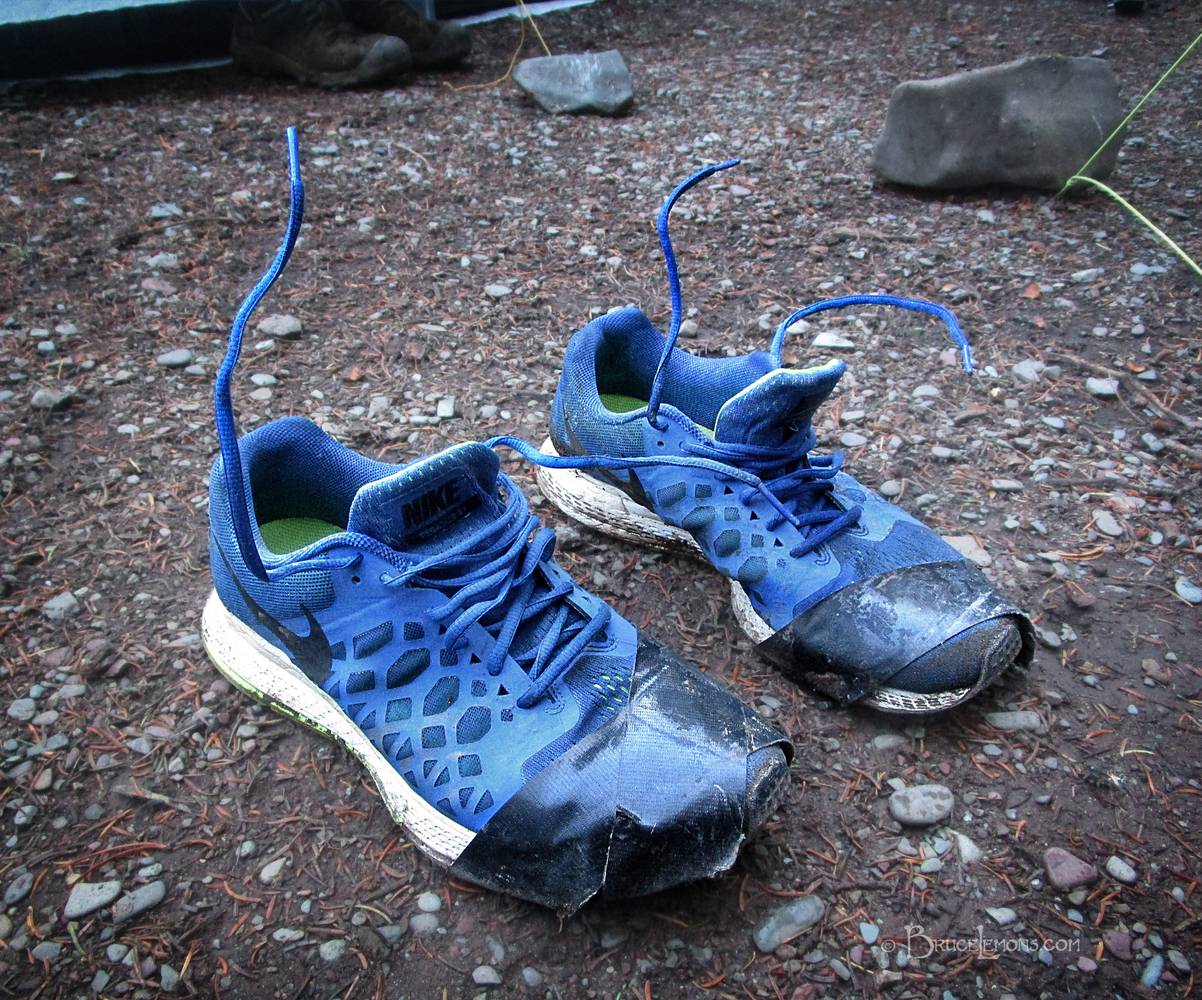 Frozen Hiking Shoes - Glacier National Park Frozen hiking shoes on a cold morning at Elizabeth Lak. Glacier National Park, Montana.
