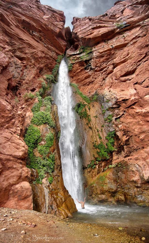 Deer Creek Falls Swimmer - Grand Canyon Deer Creek Falls swimmer. Arizona, Grand Canyon National Park, North Rim, Bill Hall Trail, Deer Creek, Deer Creek Falls.